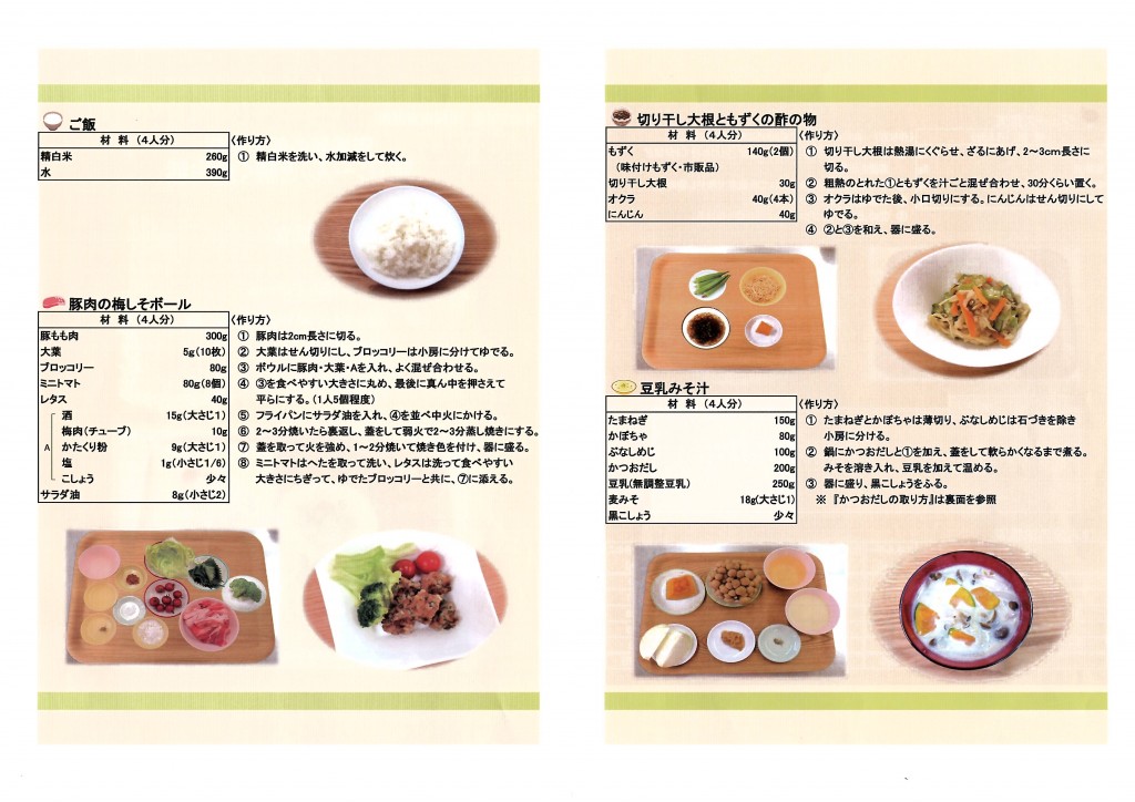 講話のあとの調理実習は、『腎(じ~ん)と続く食生活』をテーマにした、